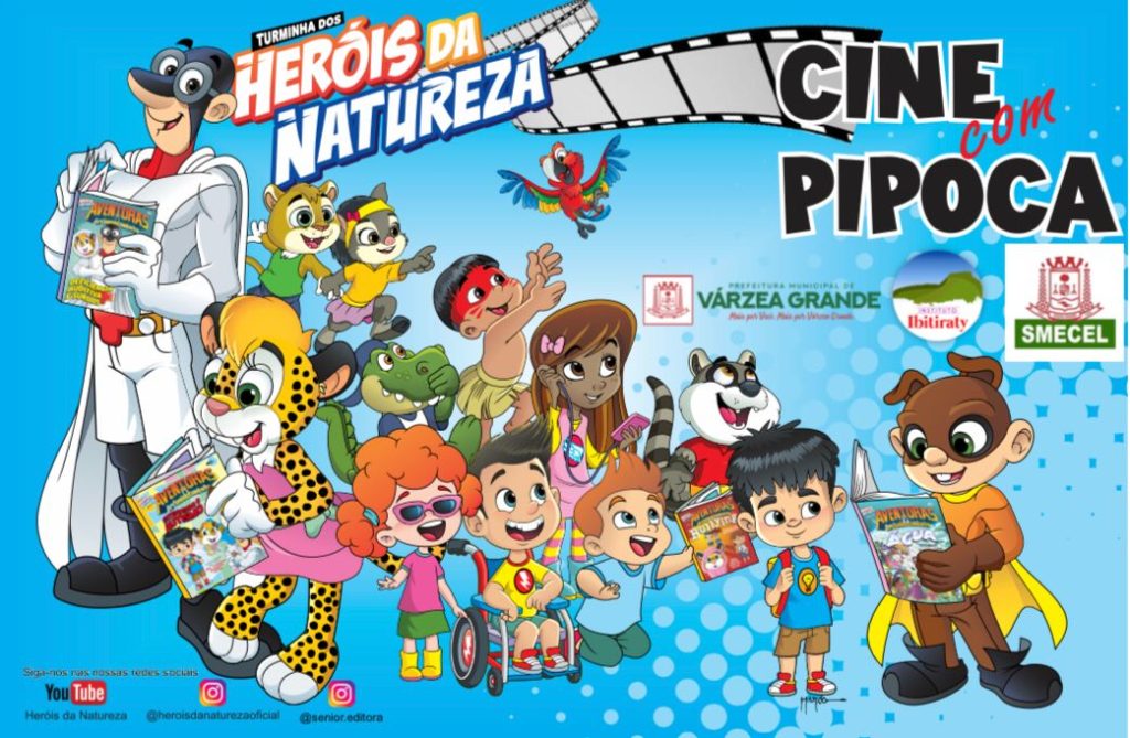 Alunos das escolas da Rede Municipal de Ensino de Várzea Grande estão sendo contempladas com o Projeto “Cine com Pipoca”, que tem como apresentação principal os vídeos da Turminha Dos Heróis Da Natureza – Tuiuiú-Man e Capivara Boy. O projeto teve início na manhã de quarta-feira (01), na Escola Municipal de Educação Básica – EMEB Nair de Oliveira Correa, no bairro Mapim.