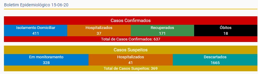 Sobre o número de casos, a cidade passou de 586 registrados ontem para 637 no dia de hoje. Deste total 411 pessoas estão em isolamento domiciliar com 37 pessoas hospitalizadas com 171 pacientes que estão com alta médica.