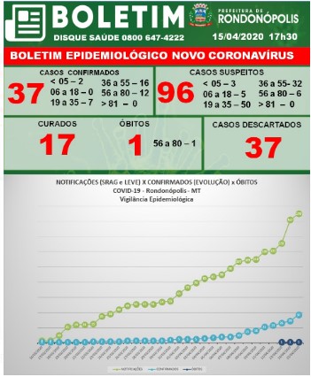Por outro lado, o número de casos suspeitos caiu de 98 para 96 e foram descartados na cidade 37 casos. Rondonópolis tem uma morte registrada, trata-se de um idoso que estava em tratamento de câncer e adquiriu o vírus no estado de São Paulo.