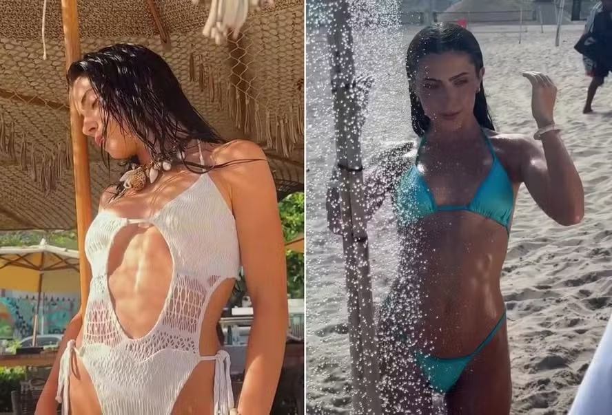 Jade Picon, de 24 anos de idade, tomou uma ducha e desceu uma ‘escada rolante’ de areia ao estrelar um ensaio na praia. Os registros dos bastidores de um dia de trabalho ao ar livre foram divulgados pela influenciadora, atriz e ex-BBB em seus Stories do Instagram, na noite dessa segunda-feira (15).