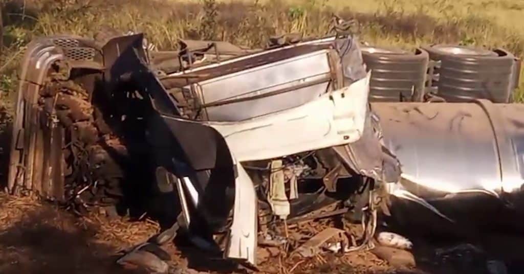 Após bater na traseira do veículo, o rodotrem saiu da pista e tombou. O motorista morreu no local e o condutor do outro veículo envolvido não sofreu nenhum ferimento.