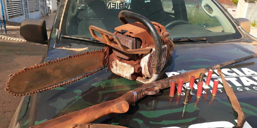 Policiais do Batalhão de Polícia Militar de Proteção Ambiental (BPMPA) prenderam um homem (47 anos) por crime de desmatamento ilegal em um assentamento, em Santo Afonso. Arma de fogo, munições e uma motosserra foram apreendidos pela PM.
