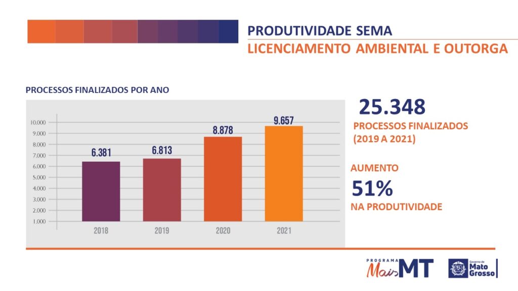 A produtividade também aumentou nos últimos três anos, com mais de 25 mil atos autorizativos emitidos pela Sema-MT.