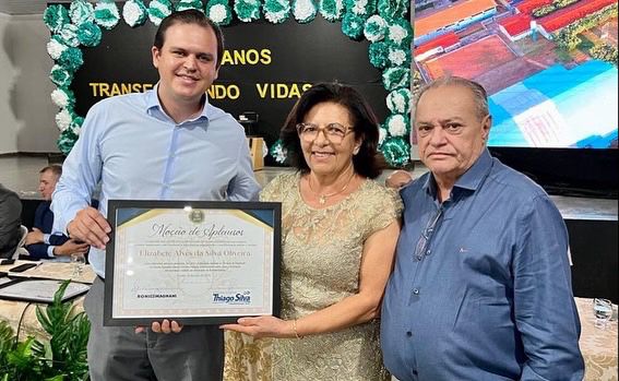 A professora Elizabete Alves também recebeu a sua moção de aplausos no evento e prestou o seu agradecimento especial ao deputado Thiago que reforça o seu carinho com os servidores da Escola Daniel e a defesa pela categoria.