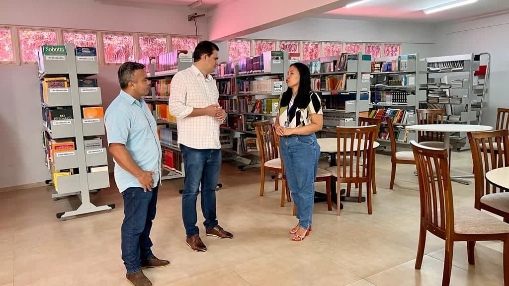 O deputado estadual Thiago Silva (MDB) e o líder comunitário Carlos Bispo estiveram em reunião com a Diretora Leila Souza da Escola Técnica de Rondonópolis, para tratar sobre a destinação de emendas e a ampliação de cursos profissionalizantes para atender a população da zona rural e da cidade.