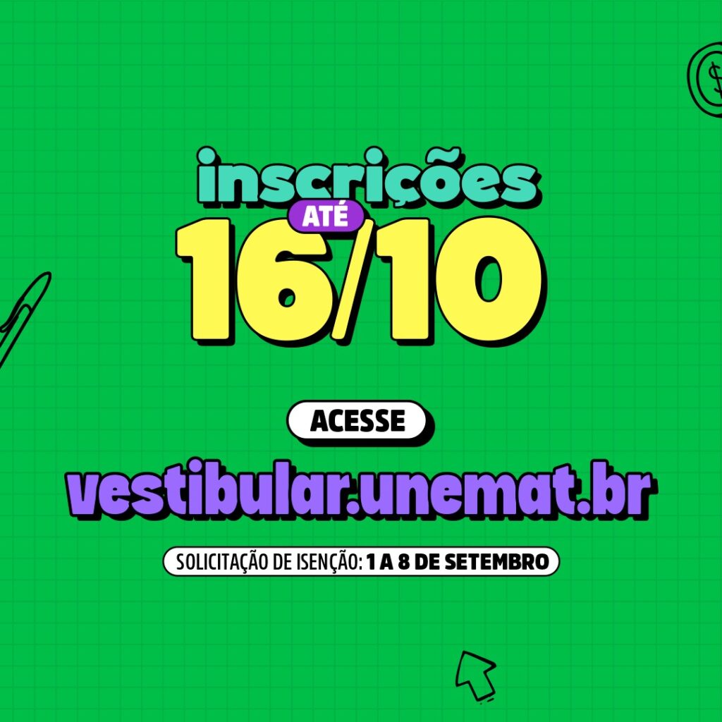 A feira também será uma oportunidade para conhecer de perto o vestibular da UNEMAT, que está com inscrições abertas. O processo seletivo oferece 2.350 vagas para ingresso em 2026. Mais informações estão disponíveis no site oficial: https://unemat.br/noticias/12-8-2025-vestibular-da-unemat-oferece-2-350-vagas-para-inicio-em-2026
