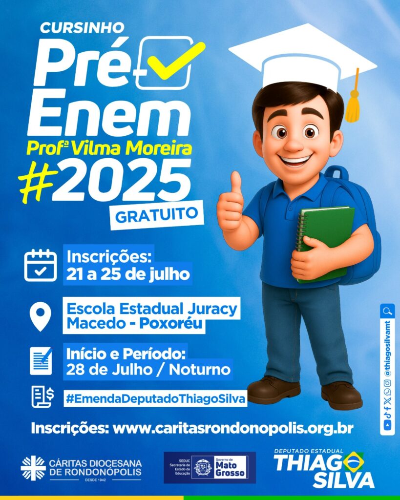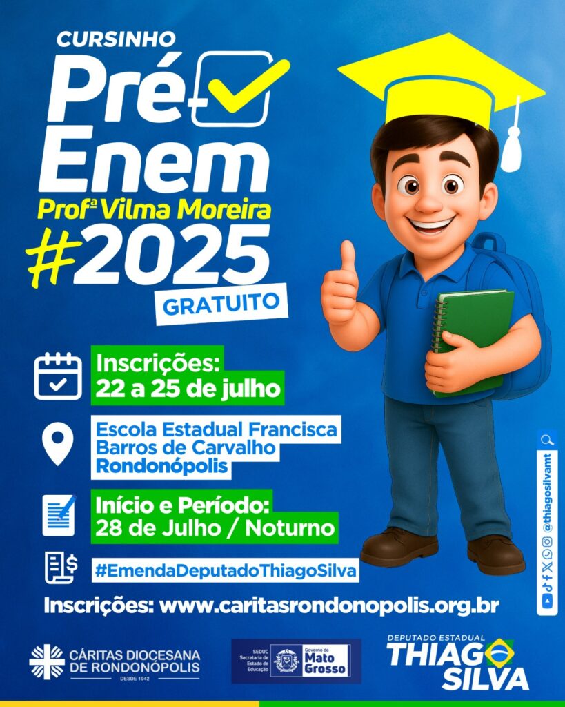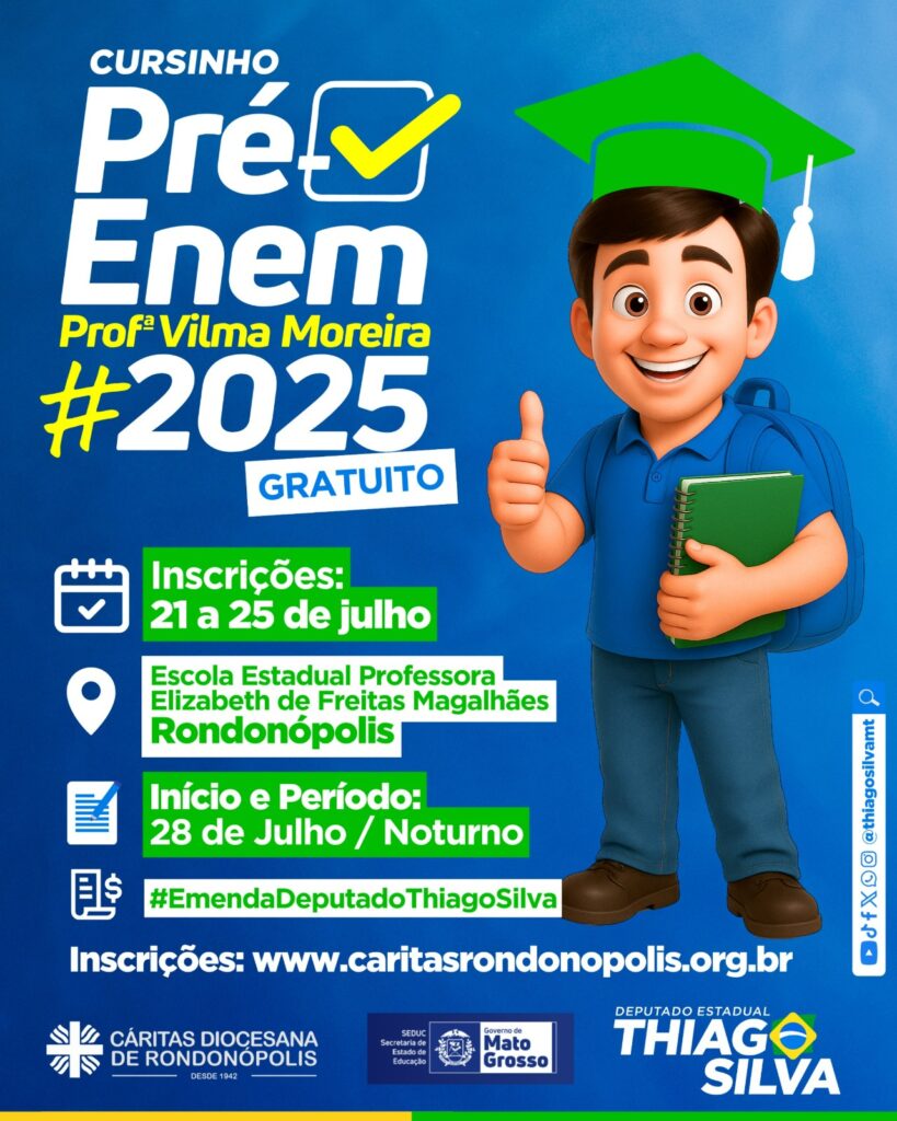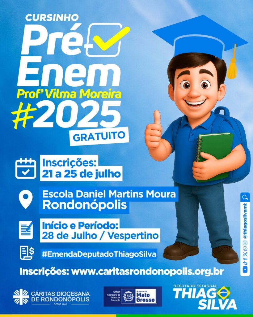 Link para inscrição: https://caritasrondonopolis.org.br/inscricao-cursinho-pre-vestibular-comunitario/