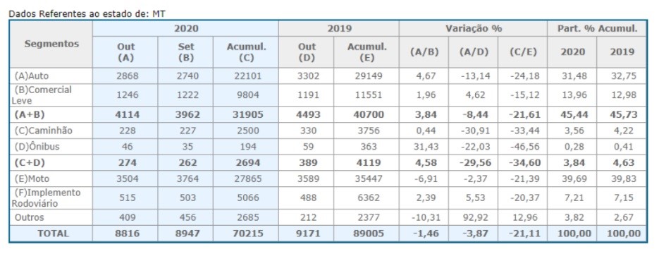 Até o fim do ano, as fábricas esperam produzir 1,9 milhão de carros comerciais leves, caminhões e ônibus, uma queda de 35% no Brasil. A queda nas vendas em outubro, em Mato Grosso, sofre os reflexos desse cenário.