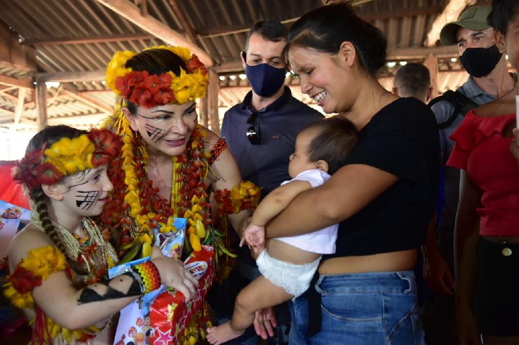 A primeira-dama do Estado de Mato Grosso, Virginia Mendes, esteve nesta terça-feira (01.12), pela terceira vez, na aldeia Wazare, no município de Campo Novo do Parecis, localizada a 390 km de Cuiabá. Ela entregou 500 cestas básicas, 500 cobertores e 300 brinquedos para as crianças da comunidade indígena local, incluindo 12 aldeias de três etnias (Haliti-Paresi, Manoki e Nambikwara).